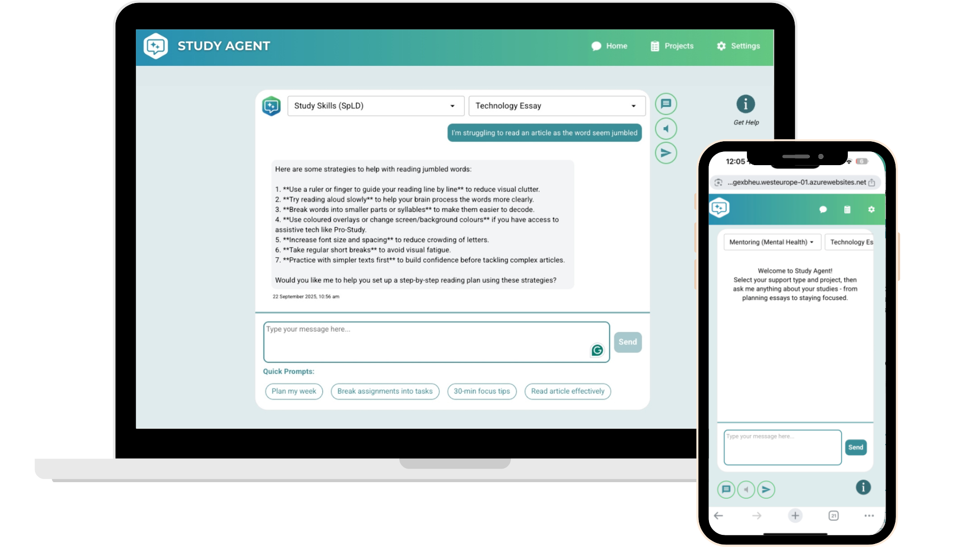 Study Agent delivers strategy-only, personalised guidance, from planning tasks and managing focus, to making better use of assistive technology.